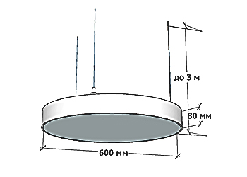 Потолочный светодиодный светильник круглый 42 Ватт, диаметр 600 мм, в белом корпусе, с типом крепления - накладной и подвесной Ledora CIRCULUS, теплый белый 3000К