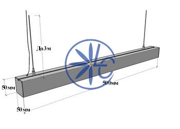 Подвесной светодиодный линейный светильник с равномерным свечением по всей поверхности рассеивателя. Опаловый матовый рассеиватель длиной 0,5 метра, мощностью 25 Ватт, Тёплого цвета свечения, в черном корпусе из алюминия.